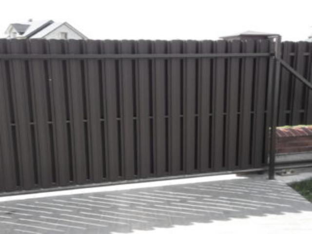 Откатные ворота с металлоштакетником RAL 8019