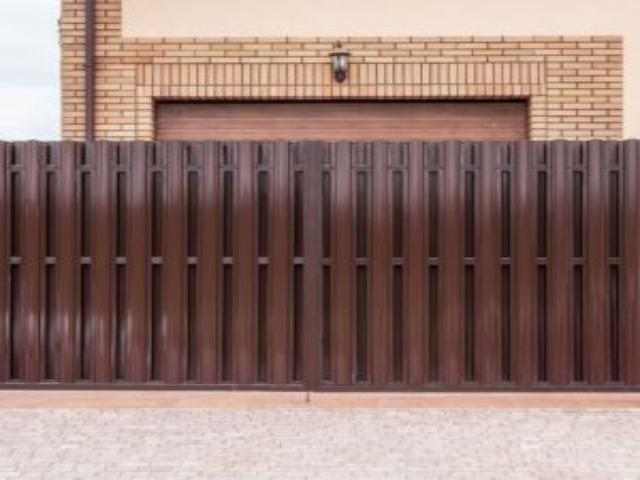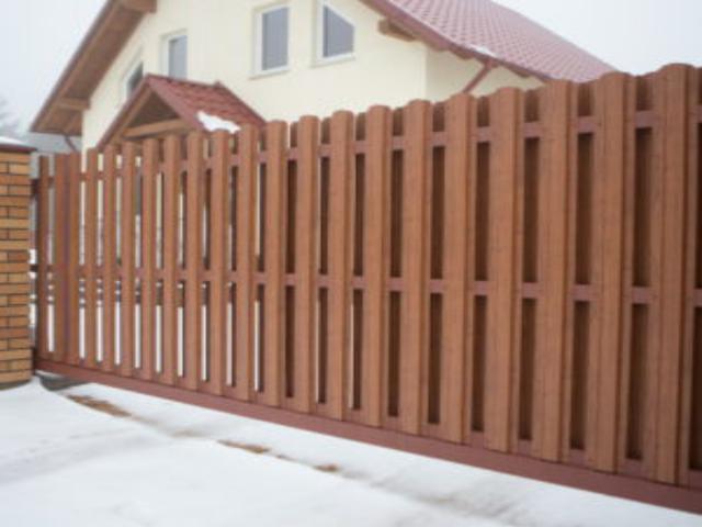 Откатные ворота с металлоштакетником дерево