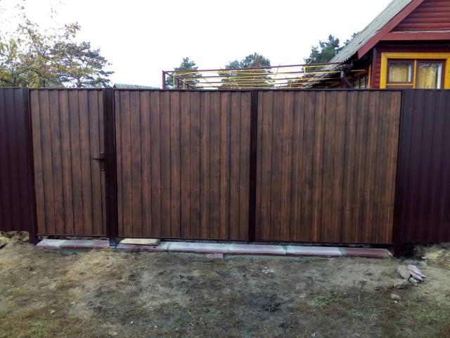 Распашные ворота с профнастилом дерево